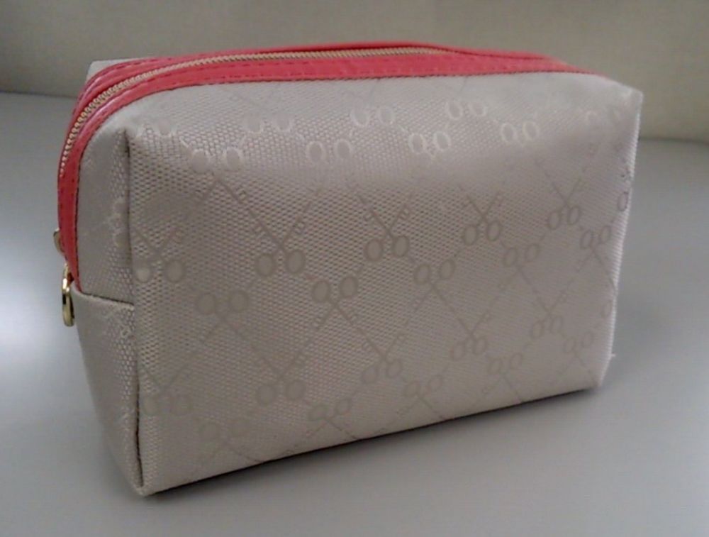 サザビーならではのモノグラム柄と光沢感が上品で、ファスナー部分のサーモンピンクが目を引きます